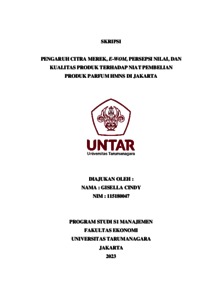 Cindy, Gisella (2023) PENGARUH CITRA MEREK, E-WOM, PERSEPSI NILAI, DAN KUALITAS PRODUK TERHADAP NIAT PEMBELIAN PRODUK PARFUM HMNS DI JAKARTA. Skripsi thesis, Universitas Tarumanagara.