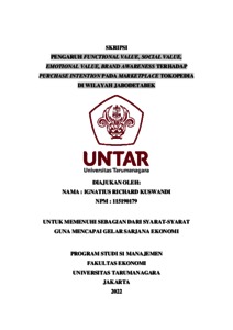 Richard, Ignatius (2022) PENGARUH FUNCTIONAL VALUE, SOCIAL VALUE, EMOTIONAL VALUE, BRAND AWARENESS TERHADAP PURCHASE INTENTION PADA MARKETPLACE TOKOPEDIA DI WILAYAH JABODETABEK. Skripsi thesis, Universitas Tarumanagara.