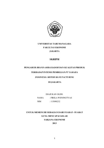 Weningtyas, Firila (2013) PENGARUH BRAND AMBASSADOR DAN KUALITAS PRODUK TERHADAP INTENSI PEMBELIAN PT YAMAHA INDONESIA MOTOR MANUFACTURING DI JAKARTA. Skripsi thesis, UNIVERSITAS TARUMANAGARA.
