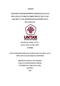 Sona, Jacky (2023) FAKTOR-FAKTOR MEMPENGARUHI LOYALITAS PELANGGAN TOKO ES KRIM MIXUE WILAYAH JAKARTA YANG DIMEDIASI OLEH KEPUASAN PELANGGAN. Skripsi thesis, Universitas Tarumanagara.