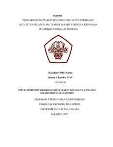Chandra, Jimmy (2023) PENGARUH UTILITARIAN DAN HEDONIC VALUE TERHADAP LOYALITAS PELANGGAN GRAB DI JAKARTA DENGAN KEPUASAN PELANGGAN SEBAGAI MEDIASI. Skripsi thesis, Universitas Tarumanagara.