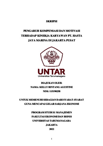 Bintang, Kelly (2022) PENGARUH KOMPENSASI DAN MOTIVASI TERHADAP KINERJA KARYAWAN PT. HASTA JAYA MARINA DI JAKARTA PUSAT. Skripsi thesis, Universitas Tarumanagara.