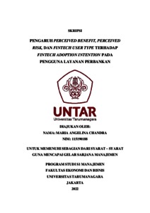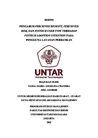 Angelina, Maria (2022) PENGARUH PERCEIVED BENEFIT, PERCEIVED RISK, DAN FINTECH USER TYPE TERHADAP FINTECH ADOPTION INTENTION PADA PENGGUNA LAYANAN PERBANKAN. Skripsi thesis, Universitas Tarumanagara.