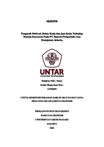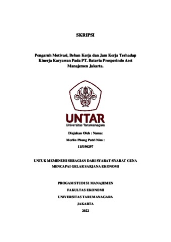 Phung, Merlin (2022) Pengaruh Motivasi, Beban Kerja dan Jam Kerja Terhadap Kinerja Karyawan Pada PT. Batavia Prosperindo Aset Manajemen Jakarta. Skripsi thesis, Universitas Tarumanagara.