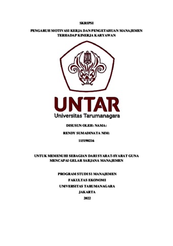 Sumadinata, Rendy (2022) PENGARUH MOTIVASI KERJA DAN PENGETAHUAN MANAJEMEN TERHADAP KINERJA KARYAWAN. Skripsi thesis, Universitas Tarumanagara.
