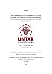 Ricardo, Ricko (2022) PENGARUH PROMOTION, LEADERSHIP BEHAVIOUR SERTA ADANYA REWARD TERHADAP EMPLOYEE PERFORMANCE PT. SPARTAN E-SPORTS DENGAN JOB SATISFACTION SEBAGAI VARIABEL MEDIASI. Skripsi thesis, Universitas Tarumanagara.