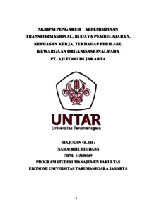 Hans, Ritchie (2023) SKRIPSI PENGARUH KEPEMIMPINAN TRANSFORMASIONAL, BUDAYA PEMBELAJARAN, KEPUASAN KERJA, TERHADAP PERILAKU KEWARGAAN ORGANISASIONAL PADA PT. AJI FOOD DI JAKARTA. Skripsi thesis, Universitas Tarumanagara.