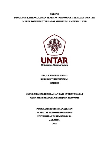 Hazain, Saraswati (2022) PENGARUH KEMENCOLOKAN PENEMPATAN PRODUK TERHADAP INGATAN MEREK DAN SIKAP TERHADAP MEREK DALAM SERIAL WEB. Skripsi thesis, Universitas Tarumanagara.