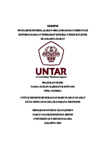 Karolin, Scelin (2023) PENGARUH PEMBELAJARAN ORGANISASI DAN ORIENTASI KEWIRAUSAHAAN TERHADAP KINERJA UMKM KULINER DI JAKARTA BARAT. Skripsi thesis, Universitas Tarumanagara.