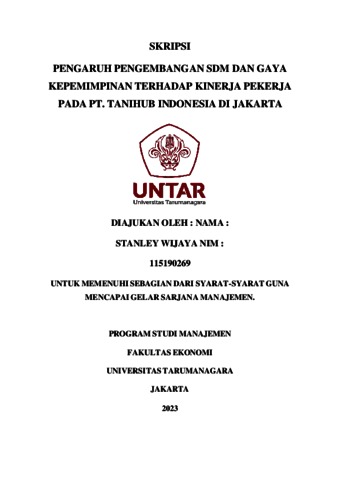 Wijaya, Stanley (2023) PENGARUH PENGEMBANGAN SDM DAN GAYA KEPEMIMPINAN TERHADAP KINERJA PEKERJA PADA PT. TANIHUB INDONESIA DI JAKARTA. Skripsi thesis, Universitas Tarumanagara.