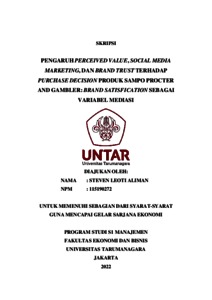 Leoti, Steven (2022) PENGARUH PERCEIVED VALUE, SOCIAL MEDIA MARKETING, DAN BRAND TRUST TERHADAP PURCHASE DECISION PRODUK SAMPO PROCTER AND GAMBLER: BRAND SATISFICATION SEBAGAI VARIABEL MEDIASI. Skripsi thesis, Universitas Tarumanagara.
