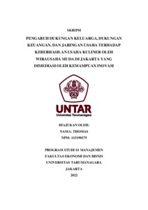 Thomas, Thomas (2022) PENGARUH DUKUNGAN KELUARGA, DUKUNGAN KEUANGAN, DAN JARINGAN USAHA TERHADAP KEBERHASILAN USAHA KULINER OLEH WIRAUSAHA MUDA DI JAKARTA YANG DIMEDIASI OLEH KEMAMPUAN INOVASI. Skripsi thesis, Universitas Tarumanagara.