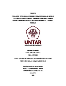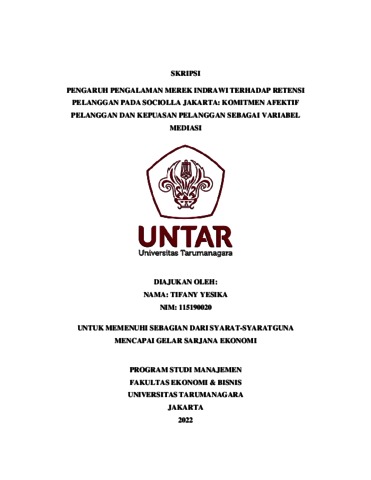 Yesika, Tifani (2022) PENGARUH PENGALAMAN MEREK INDRAWI TERHADAP RETENSI PELANGGAN PADA SOCIOLLA JAKARTA: KOMITMEN AFEKTIF PELANGGAN DAN KEPUASAN PELANGGAN SEBAGAI VARIABEL MEDIASI. Skripsi thesis, Universitas Tarumanagara.