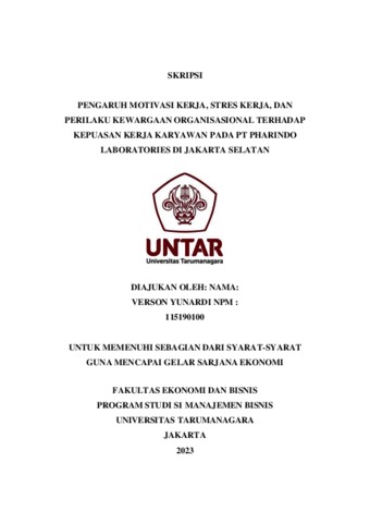 diharapkan dapat memberikan manfaat nyata bagi karyawan di PT Pharindo Laboratories dan dapat memberikan masukan kepada perusahaan PT Pharindo Laboratories untuk memperhatikan kepuasan kerja karyawannya melalui motivasi kerja, stres kerja, dan perilaku kewargaan organisasional.