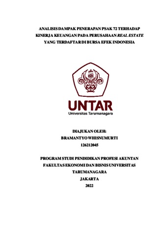 Whisnumurti, Bramantyo (2022) ANALISIS DAMPAK PENERAPAN PSAK 72 TERHADAP KINERJA KEUANGAN PADA PERUSAHAAN REAL ESTATE YANG TERDAFTAR DI BURSA EFEK INDONESIA. Masters thesis, Universitas Tarumanagara.