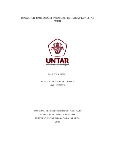 Fahru Ramzi, Fatriya (2022) PENGARUH TIME BUDGET PRESSURE TERHADAP KUALITAS AUDIT. Masters thesis, Universitas Tarumanagara.
