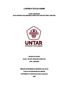 Aziziah Gumilang, Hanif (2022) AUDIT LIKUIDASI DANA PENSIUN SWADHARMA INDOTAMA FINANCE PER 1 MEI 2022. Masters thesis, Universitas Tarumanagara.