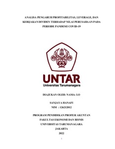 Sanjaya Hanafi, Lo (2022) ANALISA PENGARUH PROFITABILITAS, LEVERAGE, DAN KEBIJAKAN DIVIDEN TERHADAP NILAI PERUSAHAAN PADA PERIODE PANDEMI COVID-19. Masters thesis, Universitas Tarumanagara.