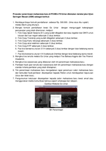 29. Prosedur penerimaan mahasiswa baru di PS MKn FH Untar dilakukan melalui jalur Ujian Saringan Masuk.pdf Download (190kB) | Preview |