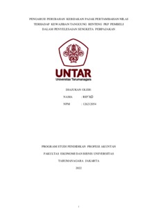 Rif'ad, Rif'ad (2022) PENGARUH PERUBAHAN KEBIJAKAN PAJAK PERTAMBAHAN NILAI TERHADAP KEWAJIBAN TANGGUNG RENTENG PKP PEMBELI DALAM PENYELESAIAN SENGKETA PERPAJAKAN. Masters thesis, Universitas Tarumanagara.