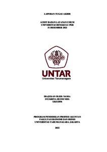 Husni, Syukriya (2022) AUDIT BADAN LAYANAN UMUM UNIVERSITAS BENGKULU PER 31 DESEMBER 2021. Masters thesis, Universitas Tarumanagara.