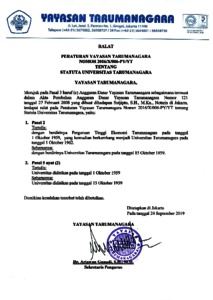 Akreditasi, FH PERATURAN YAYASAN TARUMANAGARA NOMOR 2016/X/006-PY/YT TENTANG STATUTA UNIVERSITAS TARUMANAGARA. STATUTA UNIVERSITAS TARUMANAGARA. (Unpublished)