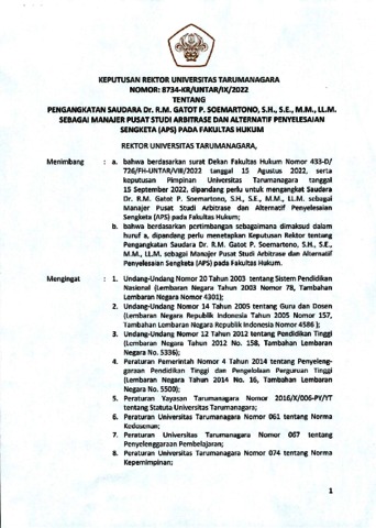Akreditasi, FH SK Rektor penganangkatan Sdr. Dr. RM. Gatot P Soemartono sbg Manager APS. [Image] (Unpublished)