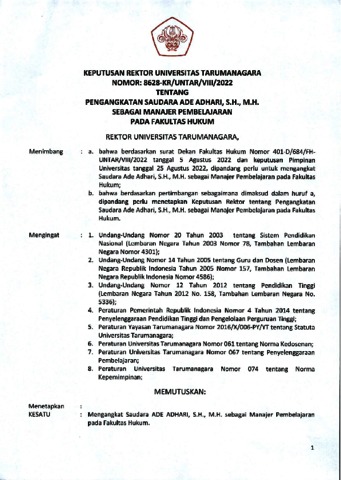 Akreditasi, FH SK Pengangkatan Manajer pembelajaran. [Image] (Unpublished)