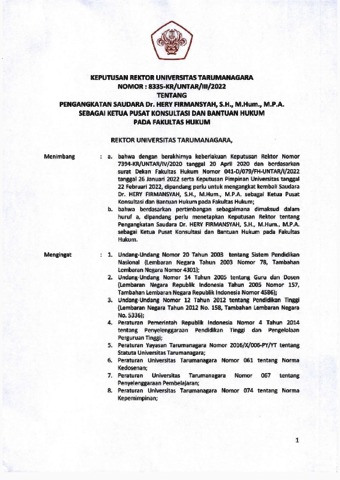 Akreditasi, FH SK Pengangkatan Ketua Pusat Konsultasi dan Bantuan Hukum Fakultas Hukum Universitas Tarumanagara. [Image] (Unpublished)