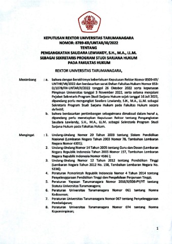 Akreditasi, FH SK Pengangkatan Sek. Program Studi Sarjana Hukum. [Image] (Unpublished)