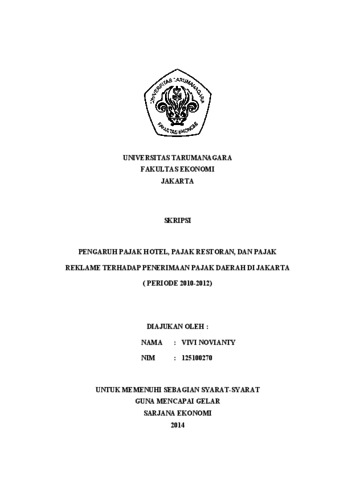 Vivi, Novianty (2014) PENGARUH PAJAK HOTEL, PAJAK RESTORAN, DAN PAJAK REKLAME TERHADAP PENERIMAAN PAJAK DAERAH DI JAKARTA ( PERIODE 2010-2012). Skripsi thesis, Universitas Tarumanagara.