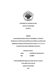 Siankawathi, Yaindriani (2014) ANALISIS PENGARUH TINGKAT PENDIDIKAN, TINGKAT PENDAPATAN, PENEGAKAN HUKUM, DAN MORAL WAJIB PAJAK TERHADAP TINDAKAN PENGGELAPAN PAJAK (TAX EVASION) WAJIB PAJAK ORANG PRIBADI DI JAKARTA. Skripsi thesis, Universitas Tarumanagara.