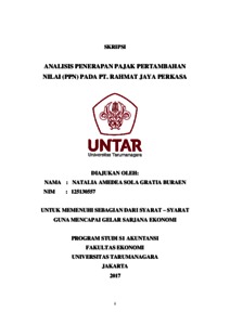 Amadea. S. G. B, Natalia (2017) ANALISIS PENERAPAN PAJAK PERTAMBAHAN NILAI (PPN) PADA PT. RAHMAT JAYA PERKASA. Skripsi thesis, Universitas Tarumanagara.