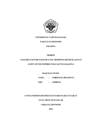Pratenta, Christina (2014) ANALISIS FAKTOR-FAKTOR YANG MEMPENGARGUHI KUALITAS AUDIT (STUDI EMPIRIK PADA KAP DI JAKARTA). Skripsi thesis, Universitas Tarumanagara.