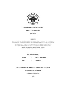 Rosaline, Grace (2014) PENGARUH TIME PRESSURE, MATERIALITAS, LOCUS OF CONTROL, DAN PENGALAMAN AUDITOR TERHADAP PENGHENTIAN PREMATUR PADA PROSEDUR AUDIT. Skripsi thesis, Universitas Tarumanagara.