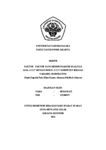 Herawati, Herawati (2014) FAKTOR - FAKTOR YANG MEMPENGARUHI KUALITAS JASA AUDIT DENGAN BUKTI AUDIT KOMPETEN SEBAGAI VARIABEL MODERATING (Studi Empirik Pada Klien Kantor Akuntan Publik di Jakarta). Skripsi thesis, Universitas Tarumanagara.