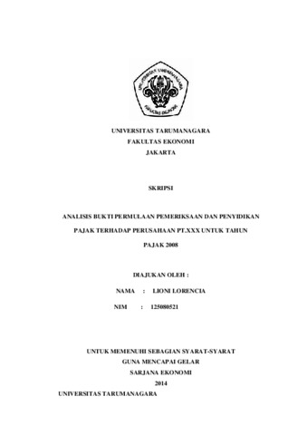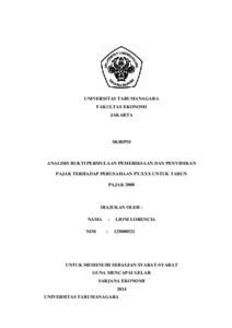 Lorencia, Lioni (2014) ANALISIS BUKTI PERMULAAN PEMERIKSAAN DAN PENYIDIKAN PAJAK TERHADAP PERUSAHAAN PT.XXX UNTUK TAHUN PAJAK 2008. Skripsi thesis, Universitas Tarumanagara.