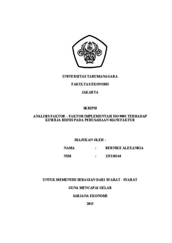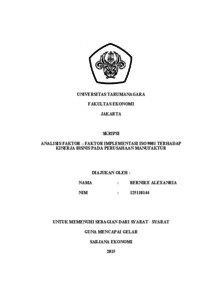 Alexanria, Bernike (2015) ANALISIS FAKTOR – FAKTOR IMPLEMENTASI ISO 9001 TERHADAP KINERJA BISNIS PADA PERUSAHAAN MANUFAKTUR. Skripsi thesis, Universitas Tarumanagara.