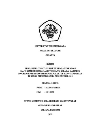 Theja, Harvin (2015) PENGARUH LITIGATION RISK TERHADAP EARNINGSMANAGEMENT DENGAN AUDIT QUALITY SEBAGAI VARIABELMODERASI PADA PERUSAHAAN MANUFAKTUR YANGTERDAFTAR DI BURSA EFEK INDONESIA PERIODE 2011-2013. Skripsi thesis, Universitas Tarumanagara.