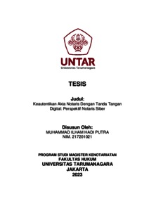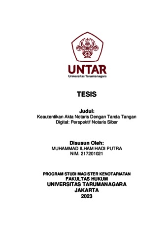 Putra, Muhammad Ilham Hadi (2023) Keauntektikan Akta Notaris Dengan Tanda Tangan Digital: Perspektif Notaris Siber. Masters thesis, Universitas Tarumanagara.