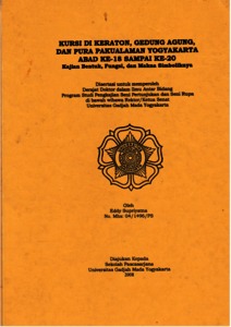 Eddy Supriyatna, Penulis Pertama KURSI DI KERATON, GEDUNG AGUNG, DAN PURA PAKUALAMAN YOGYAKARTA ABAD KE-18 SAMPAI KE-20 Kajian Bentuk, Fungsi, dan Makna Simboliknya. KURSI DI KERATON, GEDUNG AGUNG, DAN PURA PAKUALAMAN YOGYAKARTA ABAD KE-18 SAMPAI KE-20 Kajian Bentuk, Fungsi, dan Makna Simboliknya.