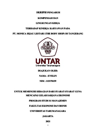 Evelin, Evelin (2021) PENGARUH KOMPENSASI DAN LINGKUNGAN KERJA TERHADAP KINERJA KARYAWAN PADA PT. MONICA HIJAU LESTARI (THE BODY SHOP) DI TANGERANG. Skripsi thesis, Unversitas Tarumanagara.