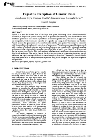 Vienchenzia Oeyta Dwitama Dinatha, Penulis Pertama and Fransisca Iriani Roesmala Dewi, Penulis Kedua and Denrich Suryadi, Penulis Ketiga (2022) Fujoshi's Perception of Gender Roles. In: TICASH 2021.