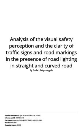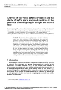 Setyaningsih, Endah and Putranto, Leksmono Suryo and Soegijanto, Soegijanto and Soelami, F.X. Noegroho (2018) Analysis of the visual safety perception and the clarity of traffic signs and road markings in the presence of road lighting in straight and curved road. In: MATEC Web Conf.: The 1st International Symposium on Transportation Studies for Developing Countries (ISTSDC 2017).