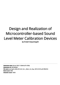 Setyaningsih, Endah and Meikaharto, R. Bayu Ramada and Candra, Henry (2020) Design and Realization of Microcontroller-based Sound Level Meter Calibration Devices. In: IOP Conference Series: Materials Science and Engineering.