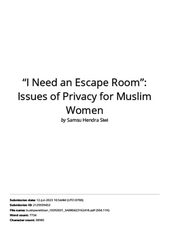 Samsu Hendra Siwi, Penulis Tunggal Turnitin “I Need an Escape Room”: Issues of Privacy for Muslim Women. Turnitin “I Need an Escape Room”: Issues of Privacy for Muslim Women.