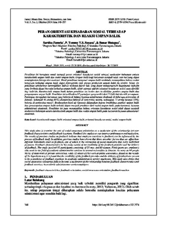 Sartika Zumria, Penulis Pertama and P. Tommy YS Suyasa, Penulis Kedua and Bonar Hutapea, Penulis Ketiga Dokumen PERAN ORIENTASI KESADARAN SOSIAL TERHADAP KARAKTERISTIK DAN REAKSI UMPAN BALIK. Dokumen PERAN ORIENTASI KESADARAN SOSIAL TERHADAP KARAKTERISTIK DAN REAKSI UMPAN BALIK.