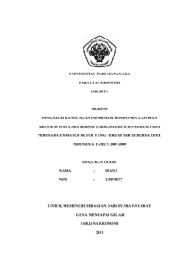 Diana, Diana (2011) PENGARUH KANDUNGAN INFORMASI KOMPONEN LAPORAN ARUS KAS DAN LABA BERSIH TERHADAP RETURN SAHAM PADA PERUSAHAAN MANUFAKTUR YANG TERDAFTAR DI BURSA EFEK INDONESIA TAHUN 2007-2009. Skripsi thesis, Universitas Tarumanagara.