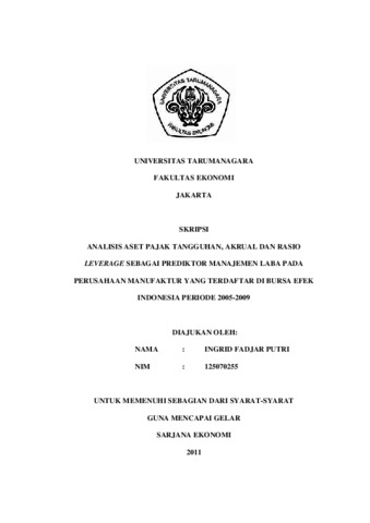 Putri, Ingrid Fadjar (2011) ANALISIS ASET PAJAK TANGGUHAN, AKRUAL DAN RASIO LEVERAGE SEBAGAI PREDIKTOR MANAJEMEN LABA PADA PERUSAHAAN MANUFAKTUR YANG TERDAFTAR DI BURSA EFEK INDONESIA PERIODE 2005-2009. Skripsi thesis, Universitas Tarumanagara.