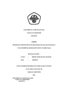 Haslim, Irene Marcellina (2011) PENERAPAN SISTEM MP3 DAN KESADARAN PAJAK MASYARAKAT YANG MEMPENGARUHI KEPATUHAN WAJIB PAJAK. Skripsi thesis, Universitas Tarumanagara.